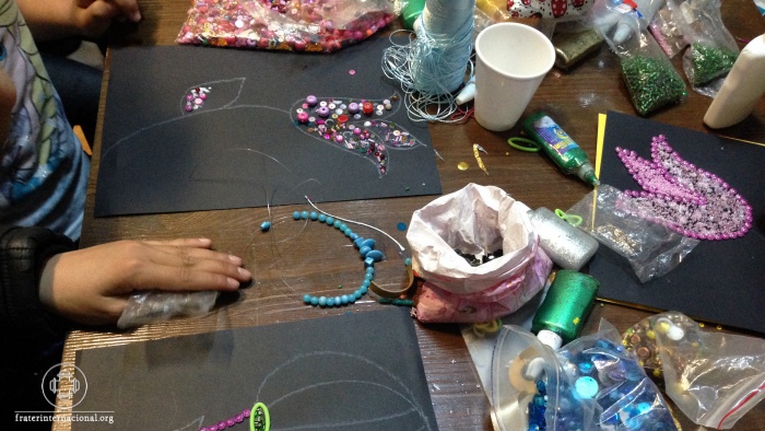 Dia dedicado para atividades com as crianças. Foram confeccionados brinquedos e colagens utilizando os materiais trazidos pelo grupo.