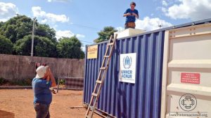 Arrival of two containers donated by the Canadian Embassy in Brazil. One of them will be used for health attendance and the other for education.