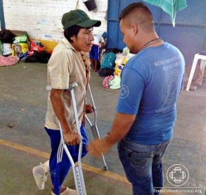 Pemón Indigenous man with the new crutches